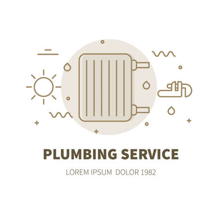 イラストや便器 ヒーター ラジエーター パイプ レンチとロゴの配管サービス セット のイラスト素材 ベクタ Image